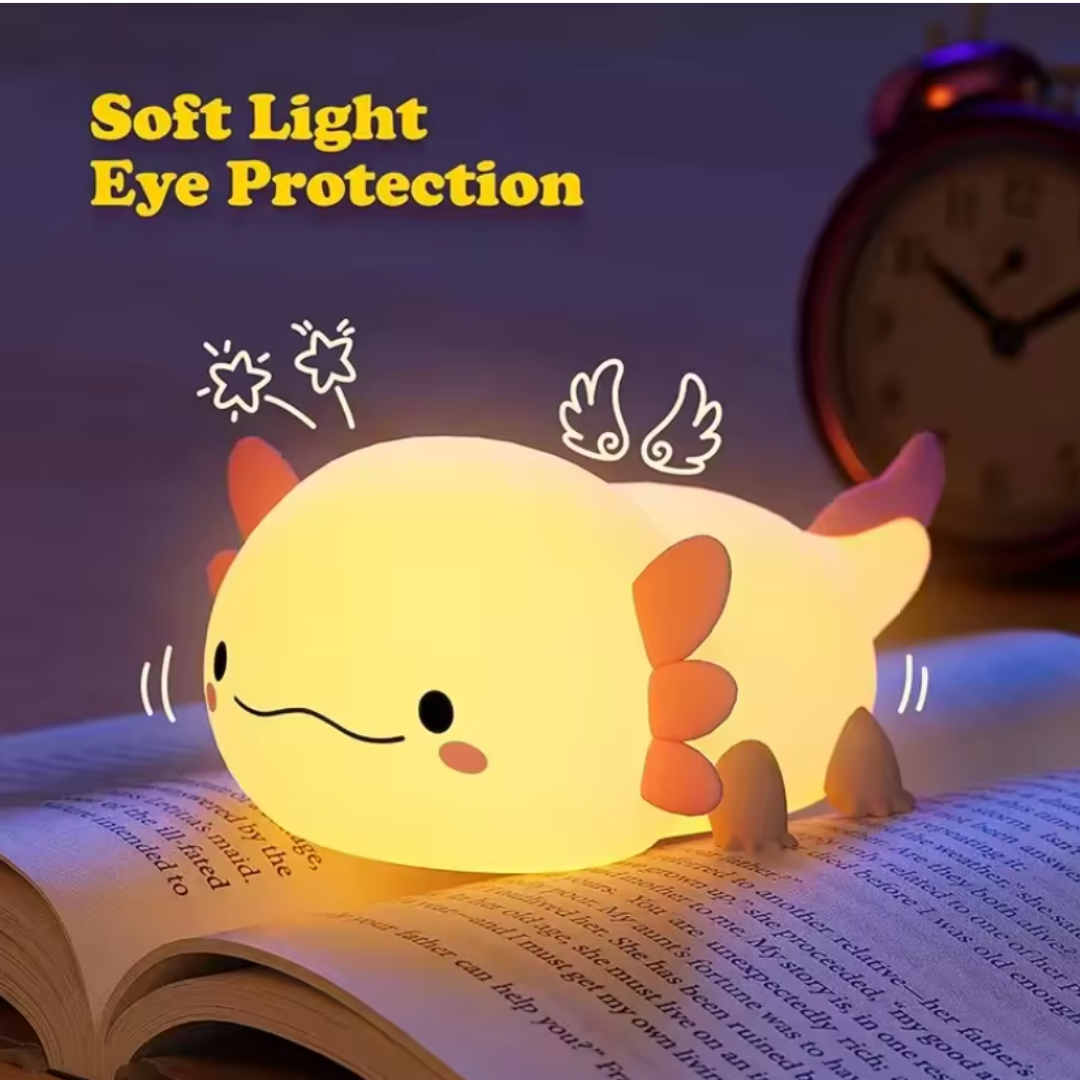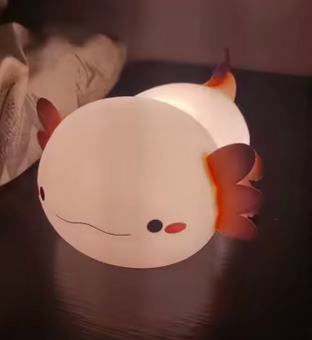 “La mejor lámpara de noche que he comprado. Recargable por USB, no necesita pilas, y la batería dura toda la noche. Además el diseño del ajolote es precioso, decora la habitación y queda genial en la mesita de noche.”